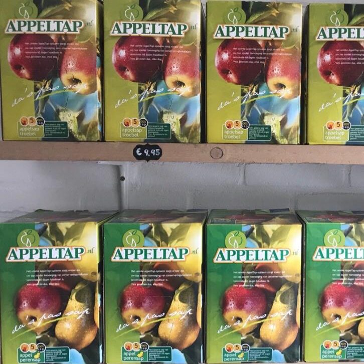 Diverse soorten 100% pure sappen in flessen en 3-liter en 5-liter tappen verkrijgbaar in onze winkel.