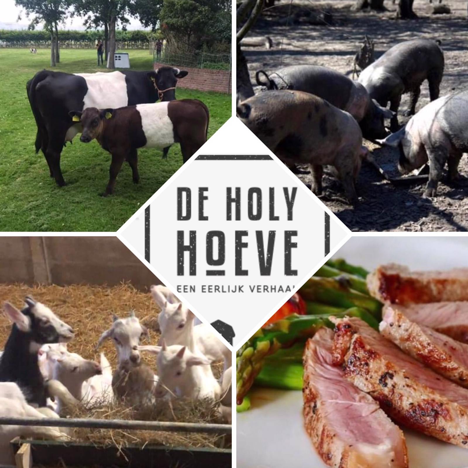 In onze winkel Lakenvelder rund- en Hampshire varkensvlees van de Holy Hoeve. Er is ook ons Scharrel kippenvlees.